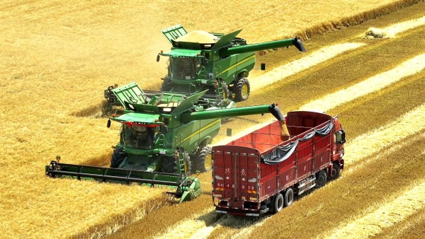 包家店镇党委委员、副镇长刘江伟说:“今年,我们镇种植春冬小麦的面积是1.8万亩,其中冬小麦面积1.34万亩,春小麦面积4600亩。目前,我们已经组织全职农业技术员全员参与夏粮抢收工作,目前组织采收机械16辆,拉运机械50余辆,确保夏收工作全面完成、颗粒归仓。”