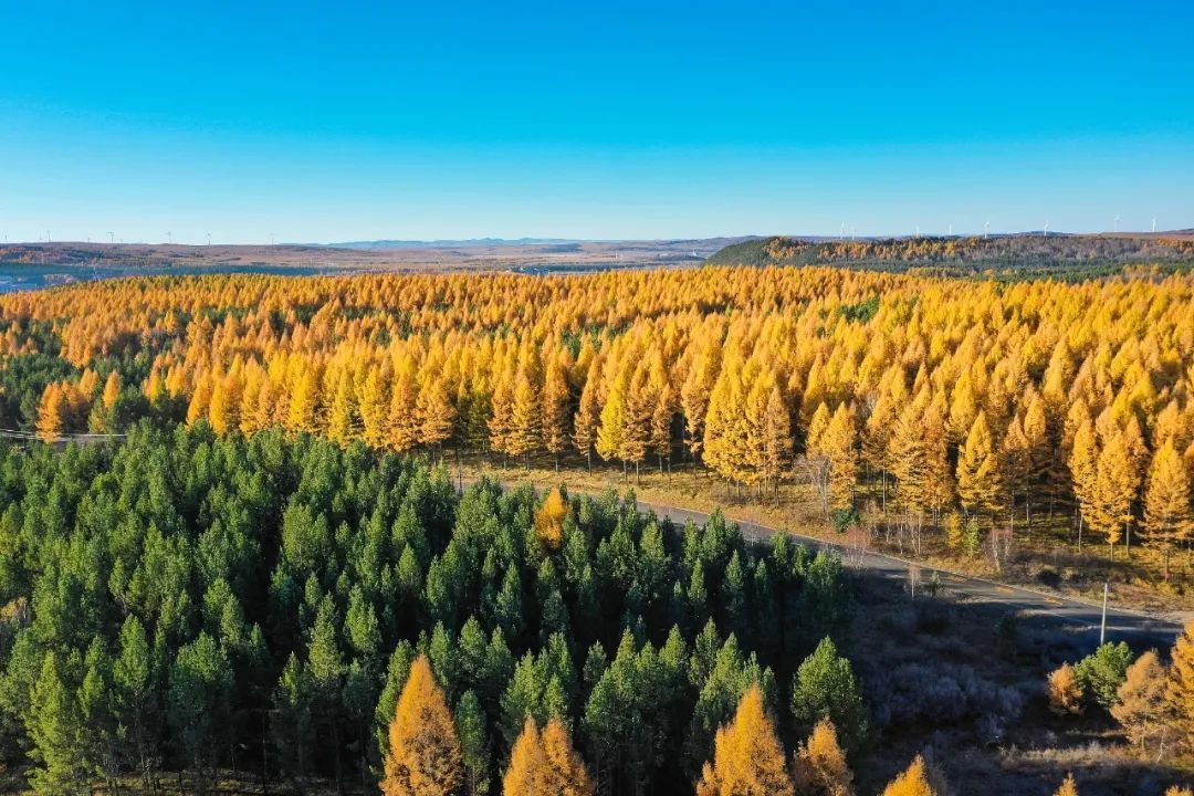 墨绿的落叶松浓郁、雅致