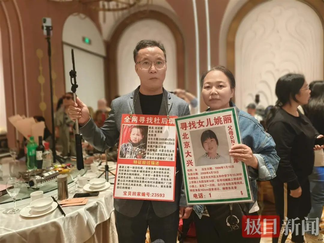 答谢宴结束后,来自各地的寻亲家庭一起举着信息牌合影。张洋洋鼓励道:“现在有发达的科学技术,还有职能部门、爱心组织的帮助,只要不放弃,就一定可以成功!”