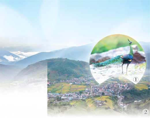 图①为恐龙河自然保护区的绿孔雀。