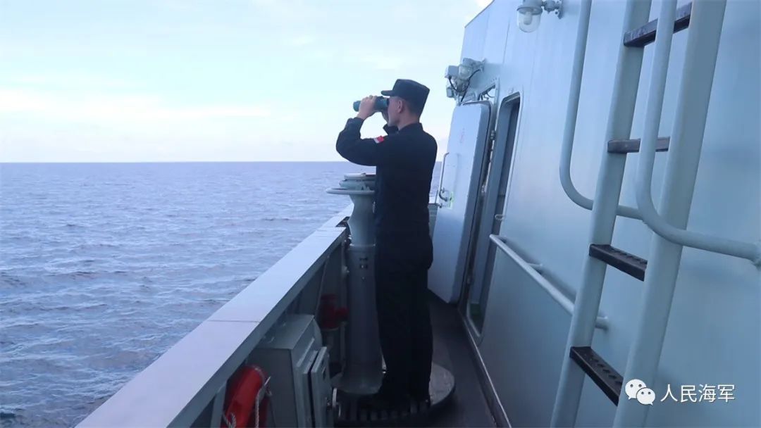 ▲阿坝舰官兵观察海上情况 潘跃强 摄