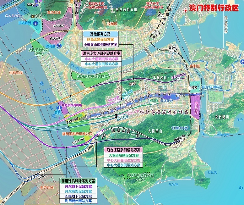 合作区目前基本明确,横琴高铁站选址于城市中心,考虑到高铁站有助于带动琴澳两地发展,因此需结合新的选址开展站城一体化规划研究、澳门轻轨横琴段西延线延长至高铁站方案研究,助力琴澳一体化高质量发展。