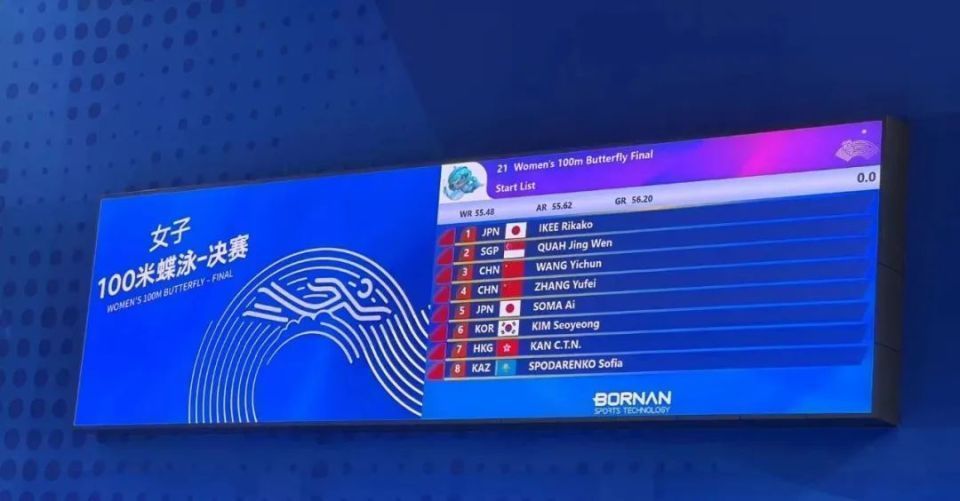 出现在了杭州奥体中心游泳馆的同一块大屏上。