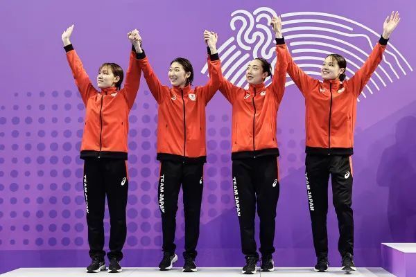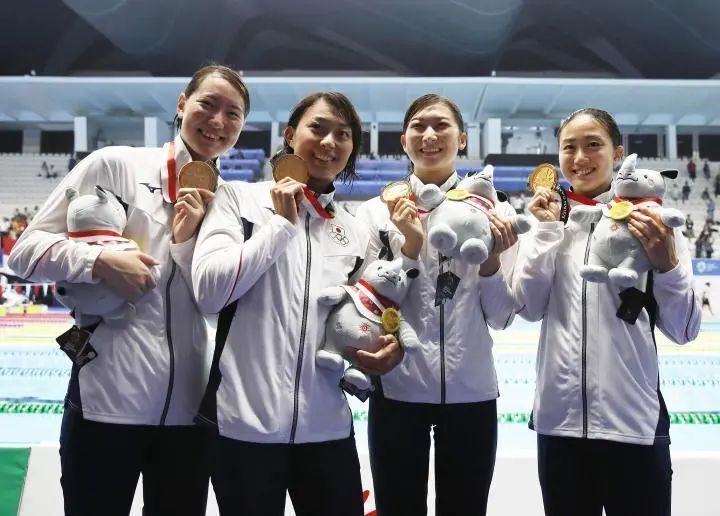 雅加达亚运会上的池江璃花子(右二)