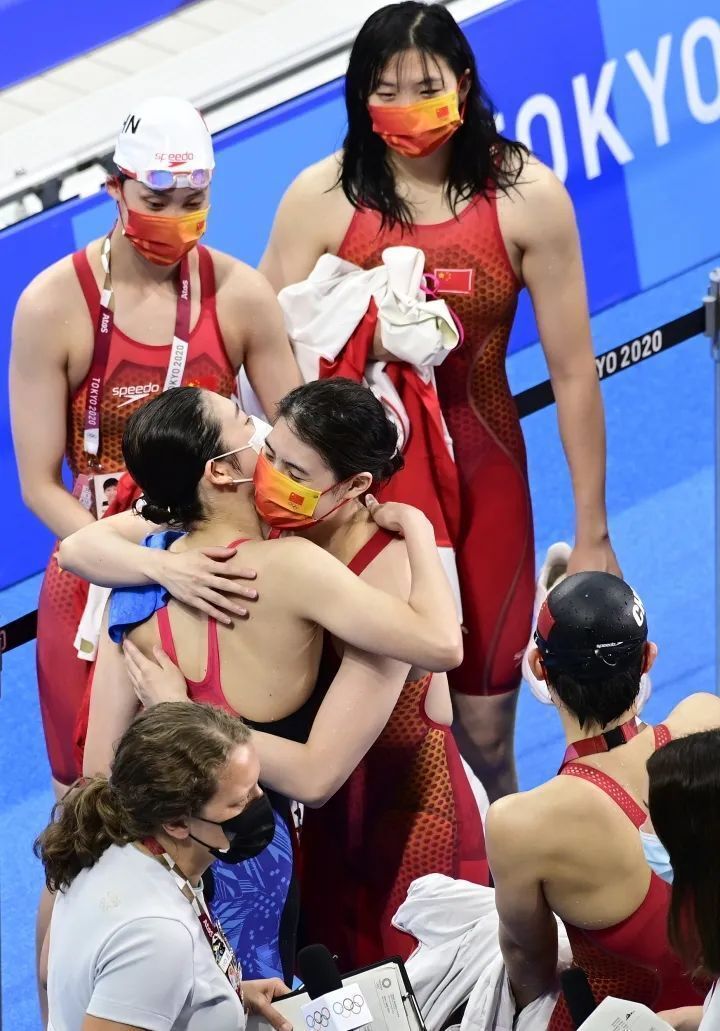 东京奥运会上,张雨霏拥抱池江 资料图片