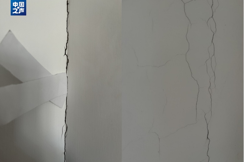 8月24日开始,陆续有居民反映家中墙面不断出现裂缝、裂纹,且楼层数逐渐上升。“3单元04户和05户位于被破坏承重墙的正上方,破开的墙体刚好在05户这边。”105户居民家中次卧的一面墙上有3道裂缝,墙角的一道裂缝从地板开裂到屋顶,可以塞入一到两张纸。