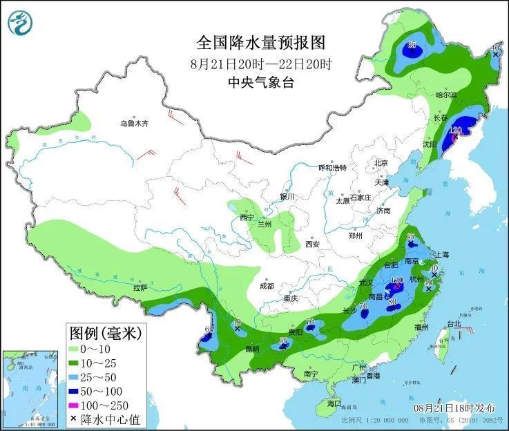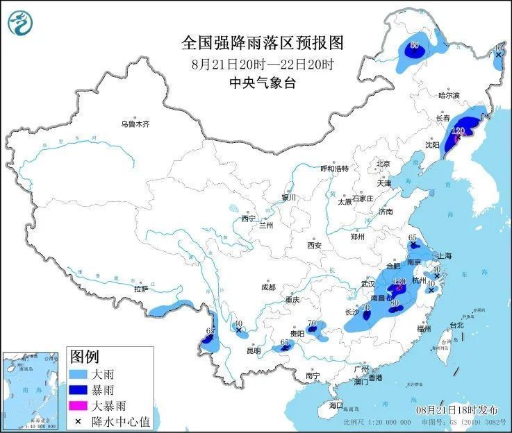 内蒙古东北部、黑龙江西部、吉林中东部、辽宁东部、江苏中部、安徽中南部、浙江、江西中北部、湖北东部、湖南中部、贵州南部、云南西北部和东部等地部分地区有大到暴雨,其中,吉林东南部和江西东北部等地局地有大暴雨。