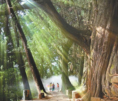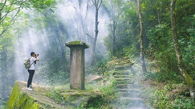 漫步在翠云廊蜿蜒的古道石板路上,松柏木的清香萦绕鼻尖,缕缕阳光穿透树荫,侧耳倾听风拂树干的声音——一步一行中,收获一段惬意时光。