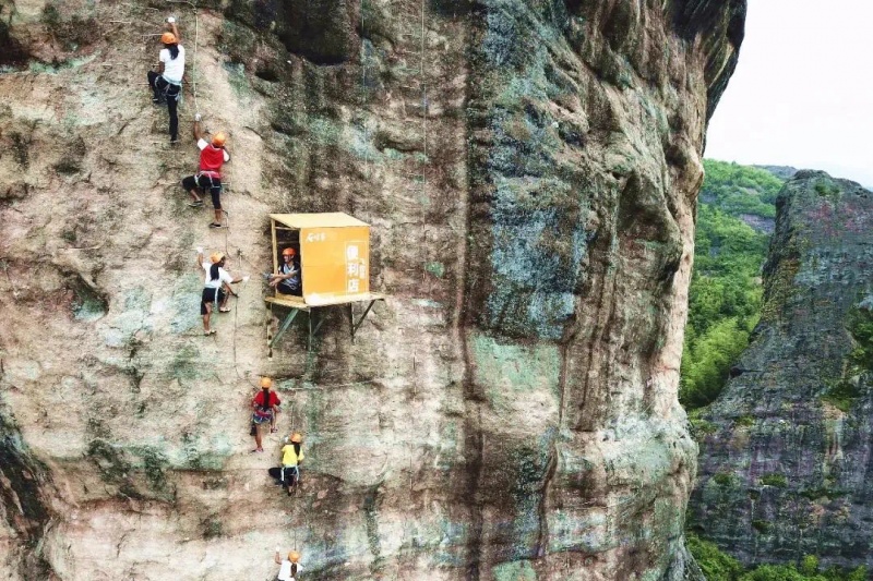 湖南一景区悬崖壁建便利店:为攀岩者设立 人工背水