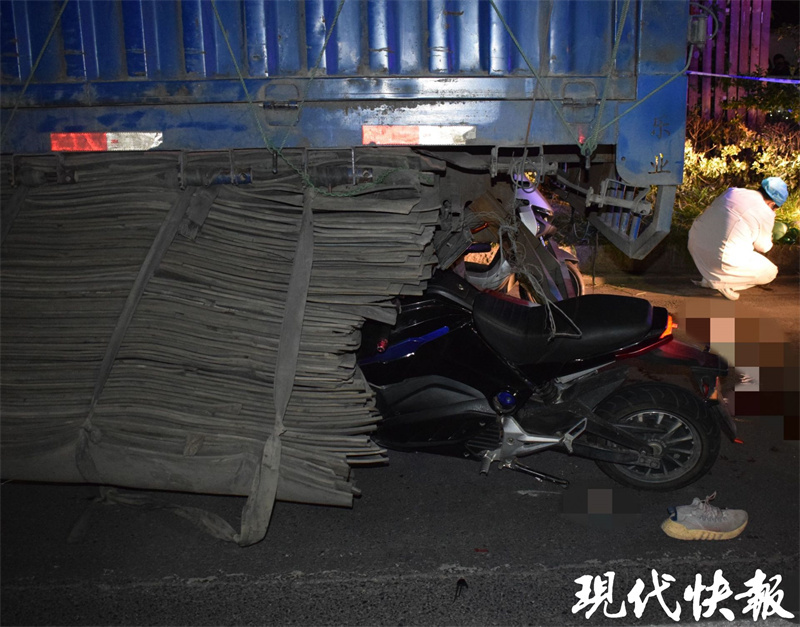 事发当日晚上8时许,扬州江都某中学14岁的初三学生李某驾驶无号牌电动车搭载同学郭某,不想途中撞上了一辆停在机动车道上的重型货车。扬州市公安局江都分局交警大队事故处理中队民警接到报警后火速赶往现场,只见电动车已经钻入了货车底部,伤者已被送往医院。事故导致乘坐在后座上的郭某受伤,而李某却不幸死亡。