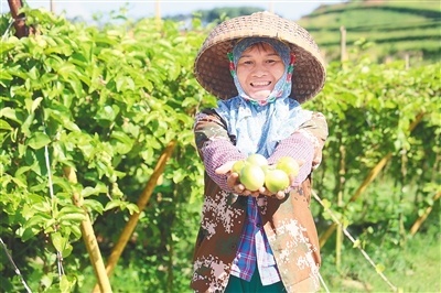 | 定安县金鸡岭农场12队的废弃矿山修复后,发展百香果种植产业。通讯员 张博 摄 |