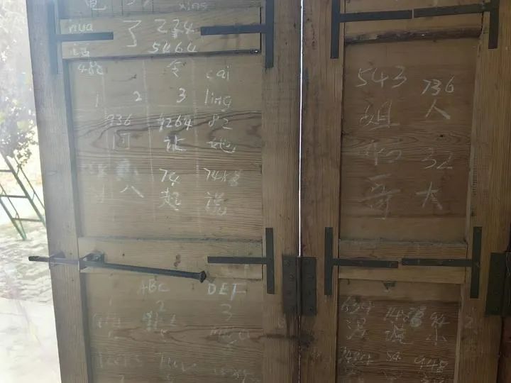 家里人为了方便张久宾打字,把常用字的九宫格输入法方式用粉笔写在了门后。