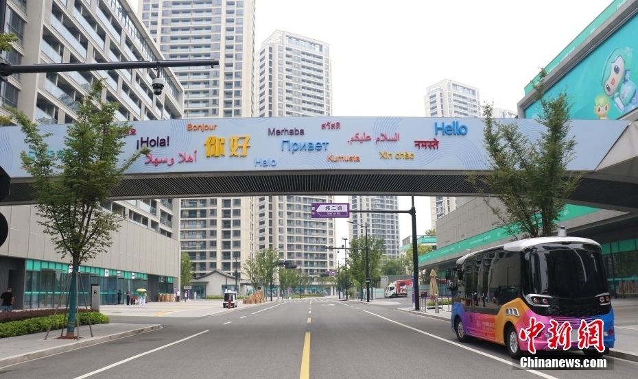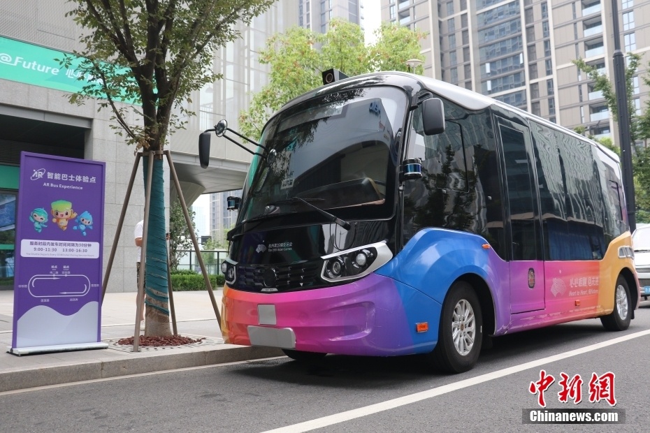 位于浙江杭州的杭州亚运村由运动员村、技术官员村、媒体村组成,是杭州亚运会、亚残运会最大的非竞赛场馆。村中,智能应用场景随处可见、吸引眼球。图为杭州亚运村中的AR智能巴士。