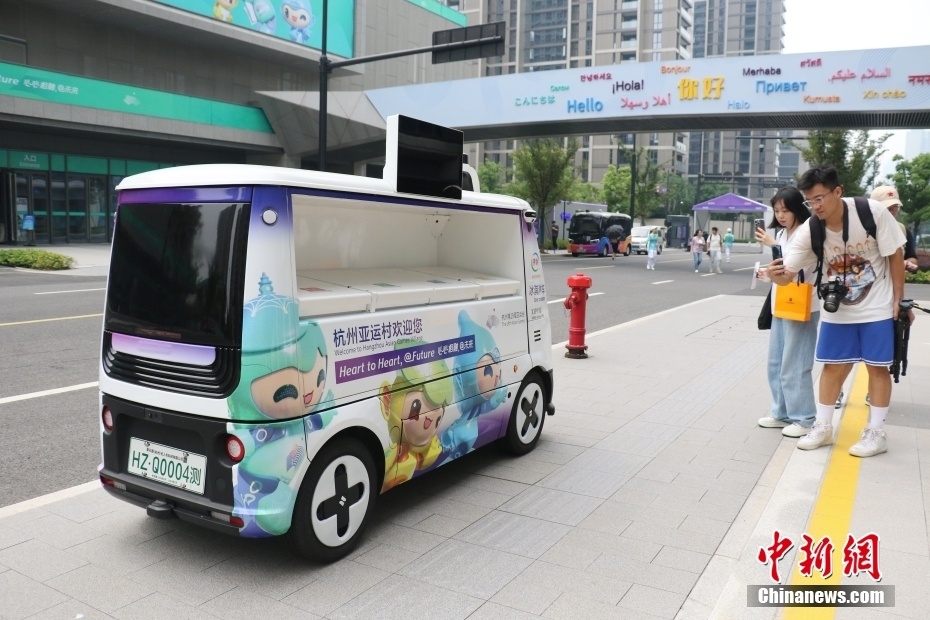 无人冰淇淋车在杭州亚运村中提供服务。
