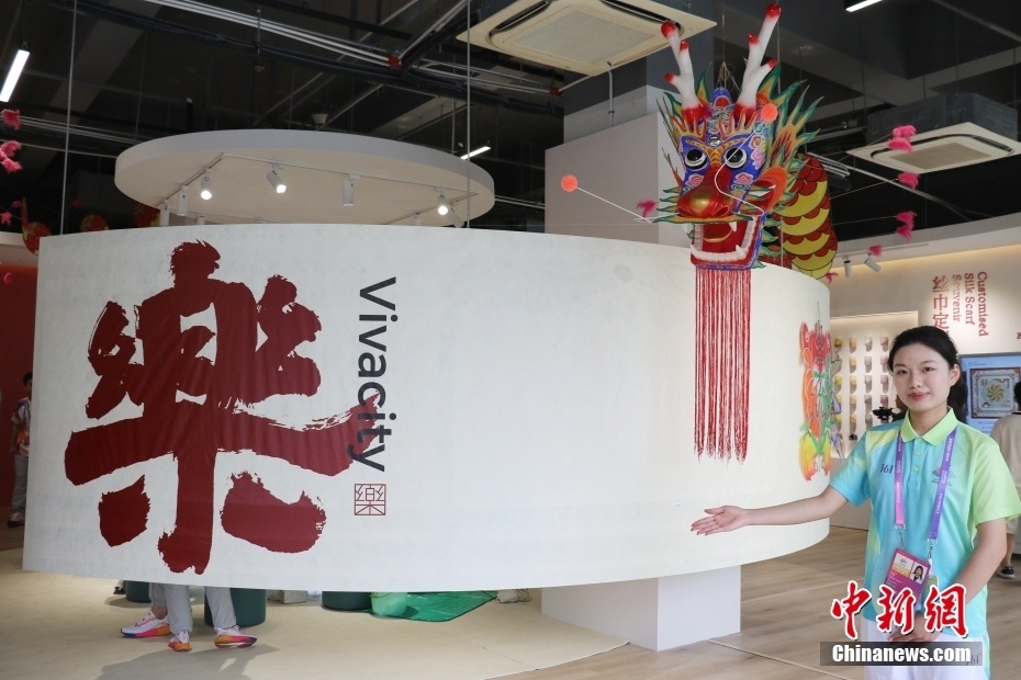 杭州亚运村运动员村文化小屋装饰着“中华龙”风筝。