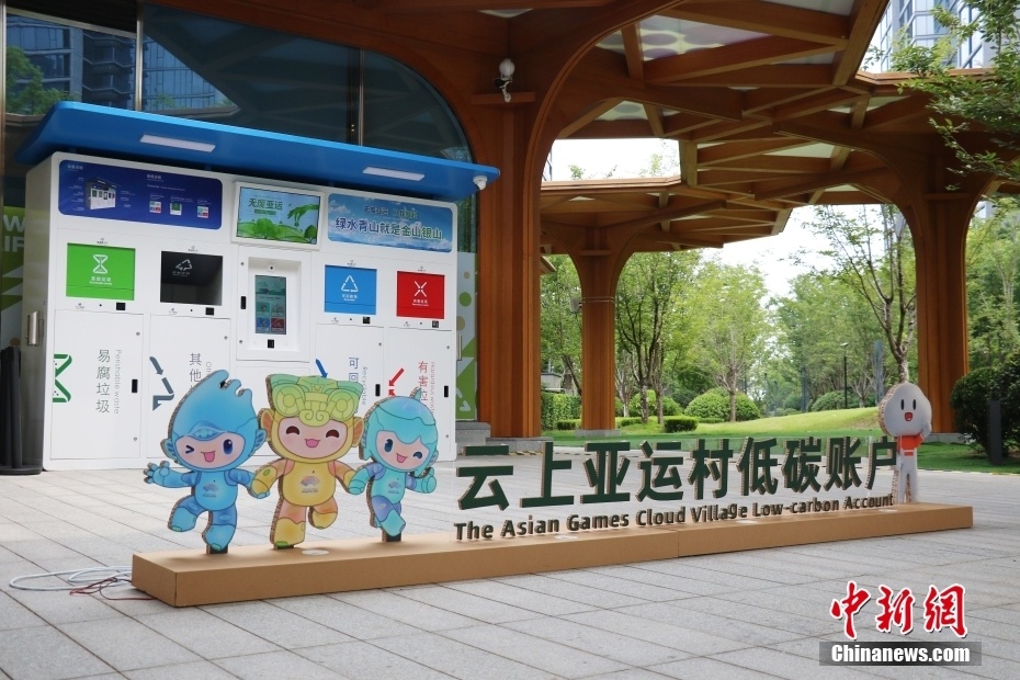 在杭州亚运村里,村民只要参与包装盒回收、无塑购物、光盘行动等活动,就可获得不同数量的碳积分,再兑换相应权益产品。图为云上亚运村低碳账户积分打卡点。