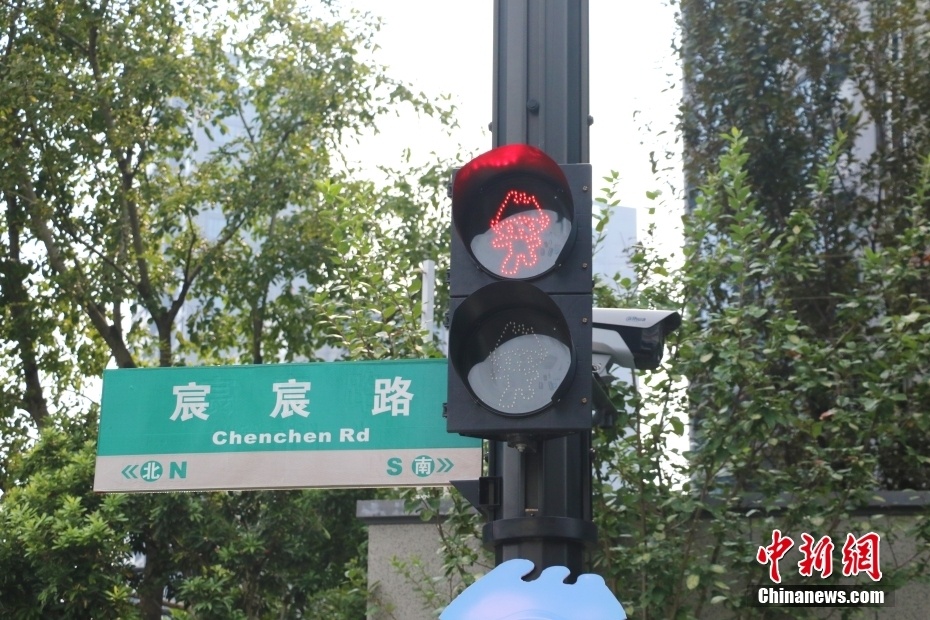 亚运村内的红绿灯以杭州亚运会吉祥物为图案。