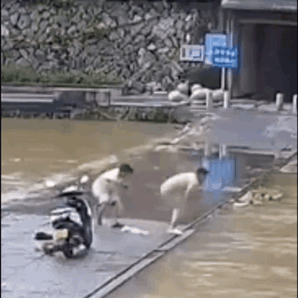 浙江丽水一男孩落水,路过的退伍军人於彦立即跳水,在湍急水流中奋力游向男孩,将他救起。