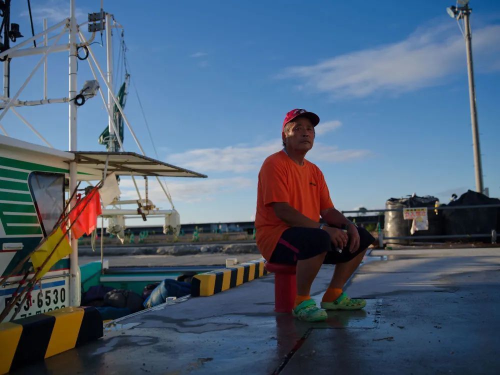 8月23日,打鱼归来的小野春雄坐在日本福岛县新地町的渔港。新华社记者 张笑宇 摄
