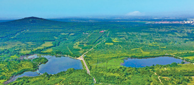 在松涛园,骄阳已经被绿树丛林完全阻隔,这里已成为一片清凉的森林公园,仿佛不是在塞北,而是在江南。松涛园原先的名字叫“贾家窑山”,距离右玉县城大约五公里,有一万多亩土地。这片万亩荒地,治理时间要比“四五道岭”晚一些,同时这里也是早期全县干部义务植树的地区之一,经过数十年的治理,如今已经成为令人瞩目的“绿色生态走廊”。