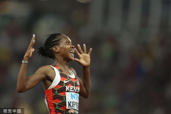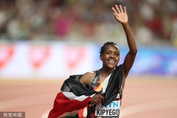 8月27日凌晨,布达佩斯田径世锦赛的女子5000米决赛中,基普耶贡在最后200米突然加速,超越所有对手,以14分53秒88的成绩夺冠。至此,她成为历史上第一位在同一届田径世锦赛上赢下1500米和5000米两枚金牌的女性跑者。