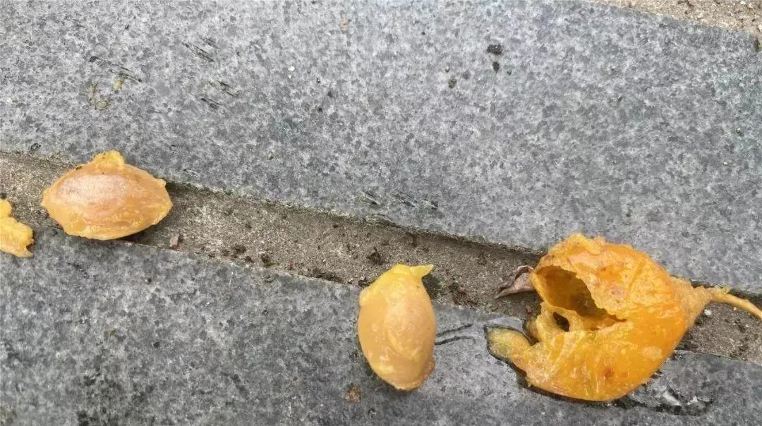 一场秋雨一场寒,这几天秋意越来越浓了,大家不难发现街头的地上、草丛里经常出现一种圆圆的黄色果子,不少掉在路边的被行人踩碎,数量着实不少。