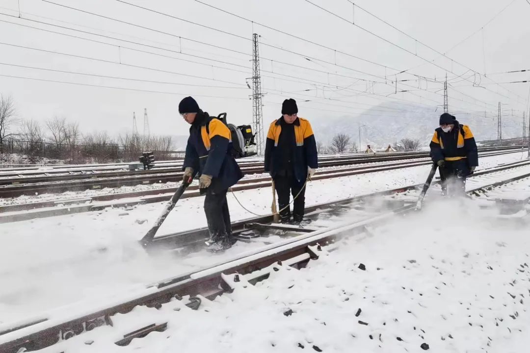 铁路部门密切关注设备变化,特别是对高寒和降雪较大地区,派专人不间断巡视设备、清除道岔积雪,保证设备状态良好和线路运输安全。