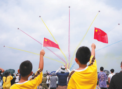 人民空军爱人民。今年是“蓝天春蕾计划”实施的第二十八个年头,空军组织了2023年度“蓝天春蕾”国防夏令营活动,邀请“蓝天春蕾计划”的部分受助学生来长春观看航展。在看见“红鹰”飞行表演队的飞行员向观众挥手致意时,来自新疆和田市机场小学的麦热拍提·木塔力普兴奋地一边欢呼一边招手,她说:“希望长大后也能成为他们中的一员,一起守卫祖国的蓝天。”