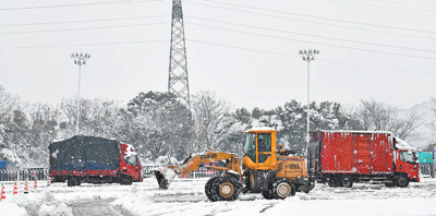 1月22日,湖南长沙,铲车在长张高速长沙西收费站清理积雪。新华社记者 陈振海摄