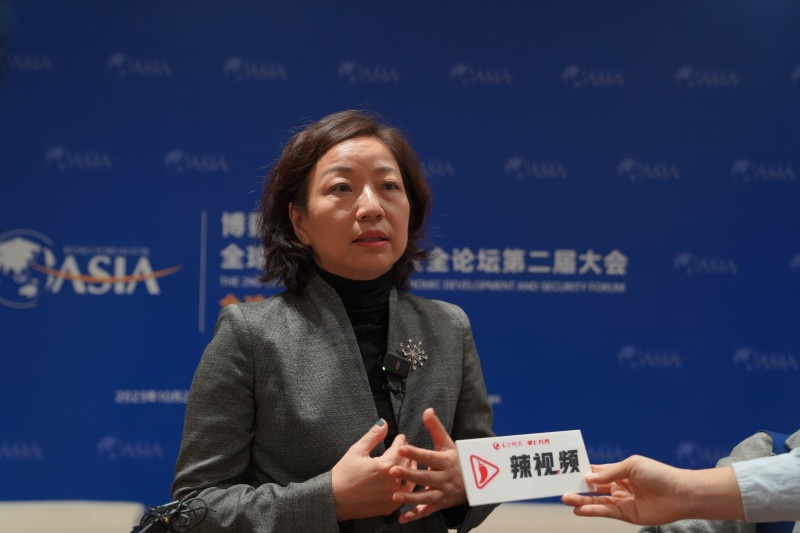 玉湖冷链(中国)有限公司首席投资官、执行副总裁韦佳接受媒体记者采访。何文瑞 王珊琪 摄