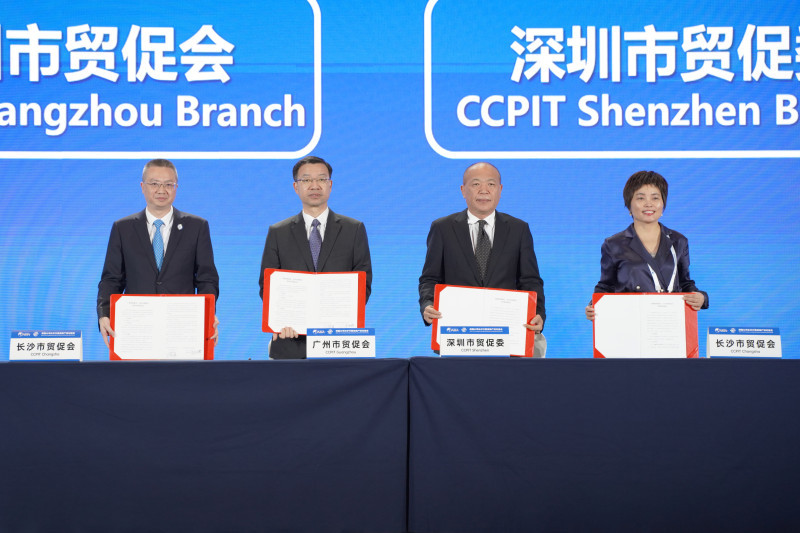 跨国公司长沙行暨高端产经对接会上,长沙市贸促会分别与广州市贸促会、深圳市贸促委签署合作协议。刘晓敏 摄
