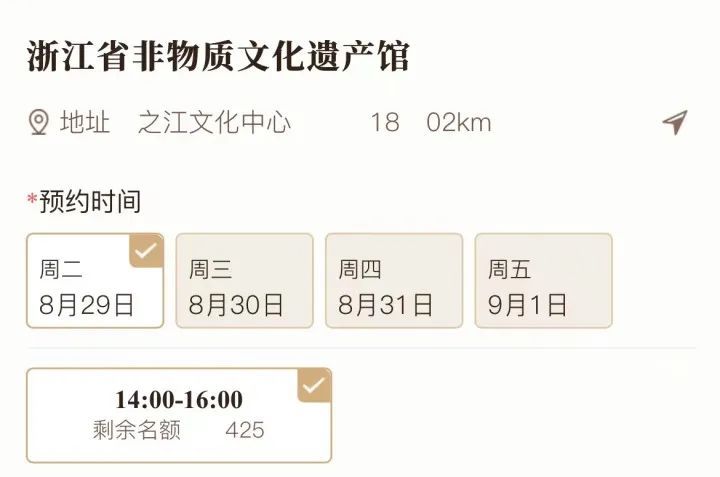 目前,浙江省博物馆之江馆、浙江省非物质文化遗产馆、浙江图书馆将陆续开放预约通道,浙江文学馆暂时还未开放预约。