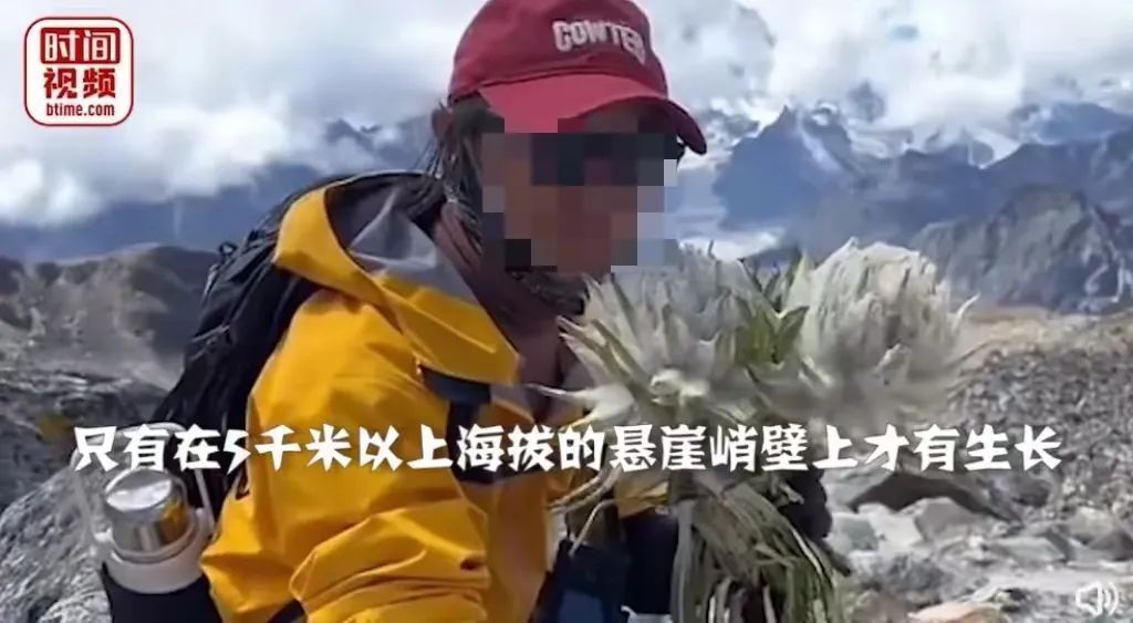 视频显示,“小枫有点浪”手拿两朵洁白的花朵,对着镜头解释是“天山雪莲”,只有在5000米以上海拔的悬崖峭壁上才能生长。他正在翻越珠峰东坡嘎玛沟郎玛拉垭口,海拔5300米,他的朋友翻越悬崖峭壁为他采来雪莲花。