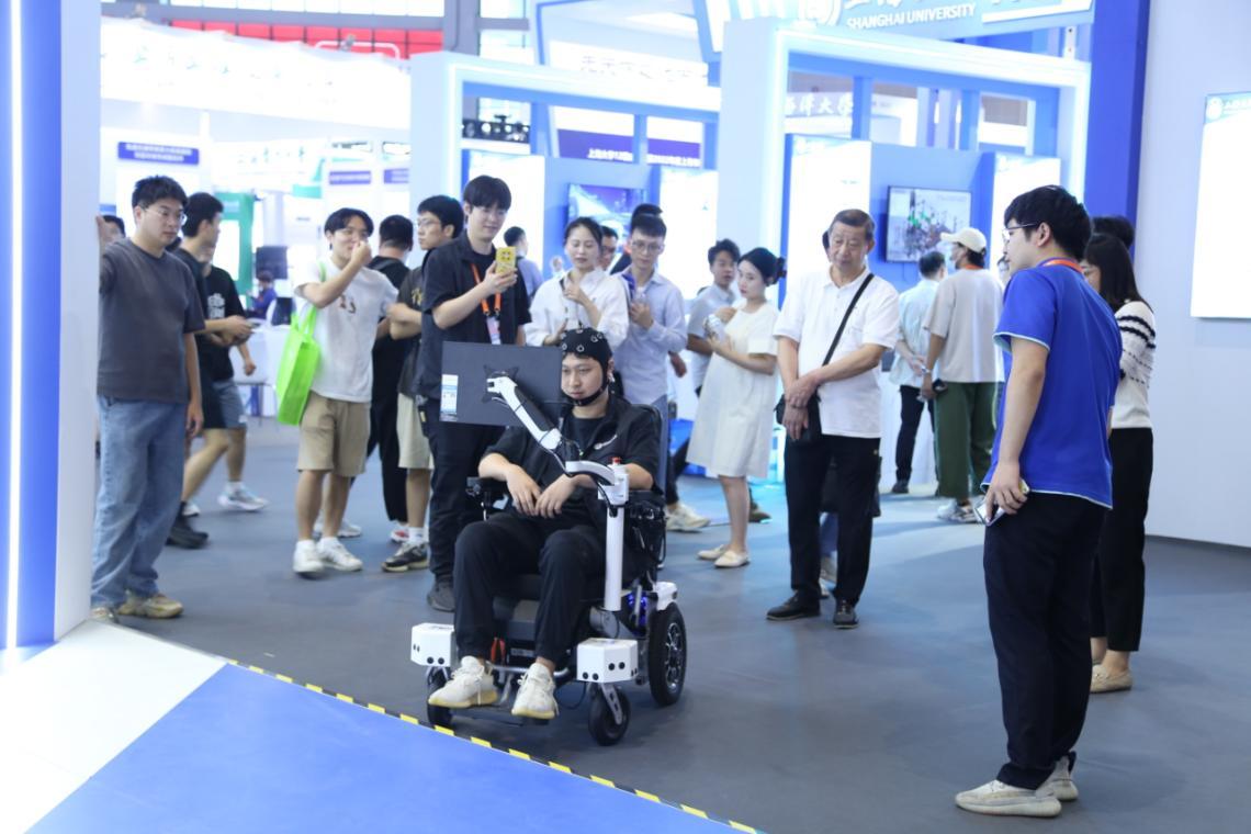 工博会上海大学展台,“脑控轮椅”项目展示。郑逸洁摄
