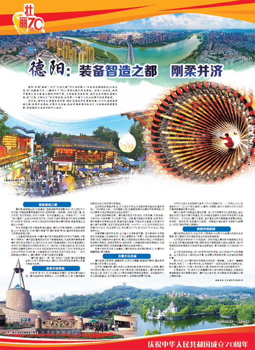德阳,别称“旌城”,位于“天府之国”四川省的腹心,与省会成都相距仅40余公里,是“沉睡数千年,一醒惊天下”的三星堆古蜀文明发源地。这里人杰地灵,既有中国重大技术装备之都的阳刚气质,又有城里鸟语花香、城外生态田园的温婉之美;有“川菜、川剧之父”的才智延续,也有第一个摘下人民公社牌子的改革基因。