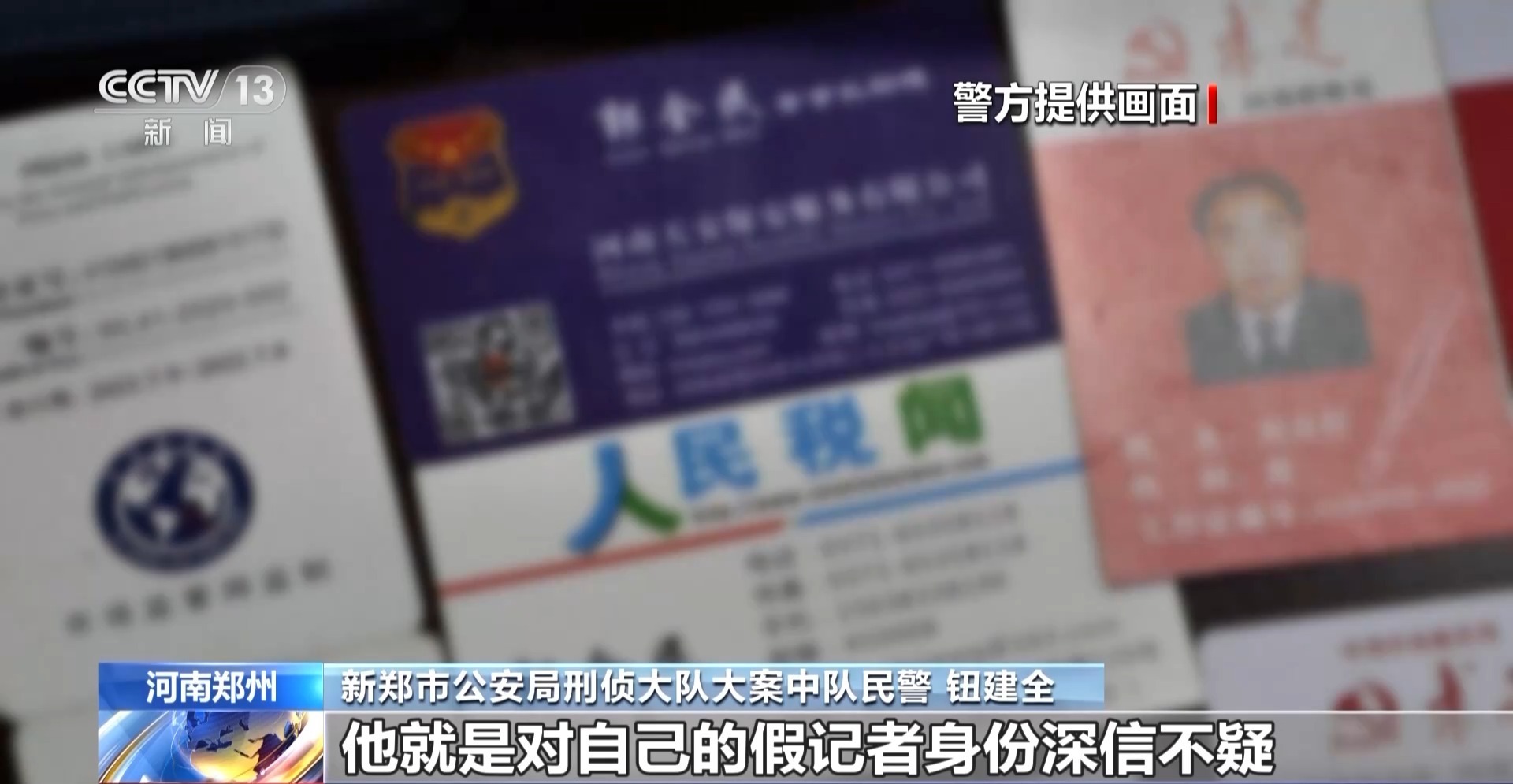 河南省郑州市新郑公安局刑侦大队大案中队民警 钮建全:他就是对自己的假记者新闻深信不疑,他现在已经入戏了,认为自己就是个真记者,跟政府或一些媒体或一些企业,他会主动说自己是哪哪哪的记者,或者说是哪哪哪媒体的工作人员。