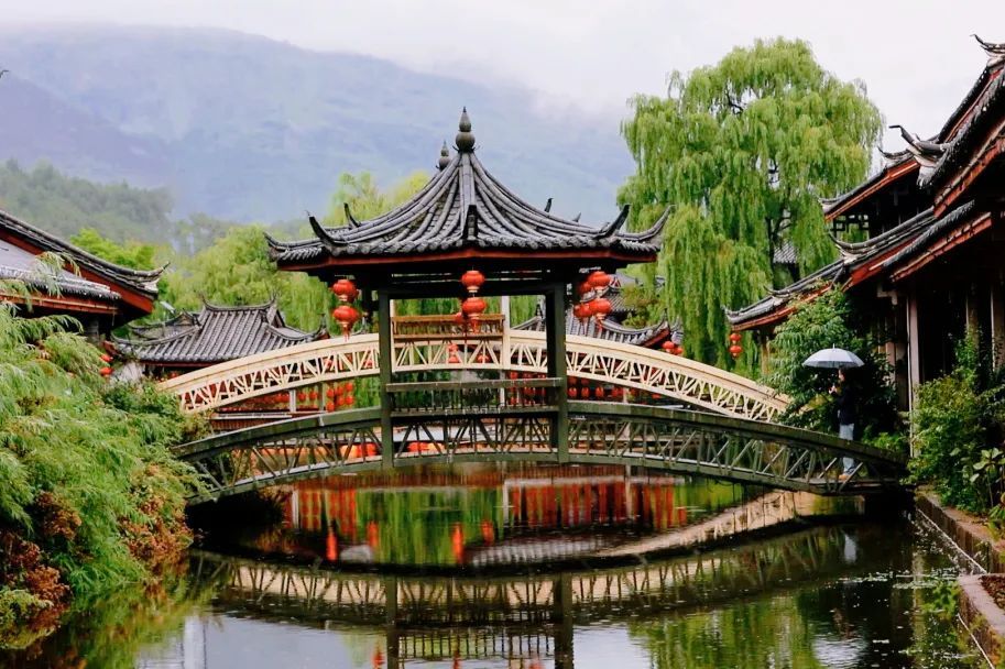束河古镇依山傍水、烟柳平桥的景致以及闲适静谧的氛围给徐霞客留下了深刻印象。