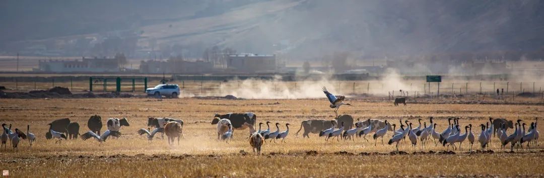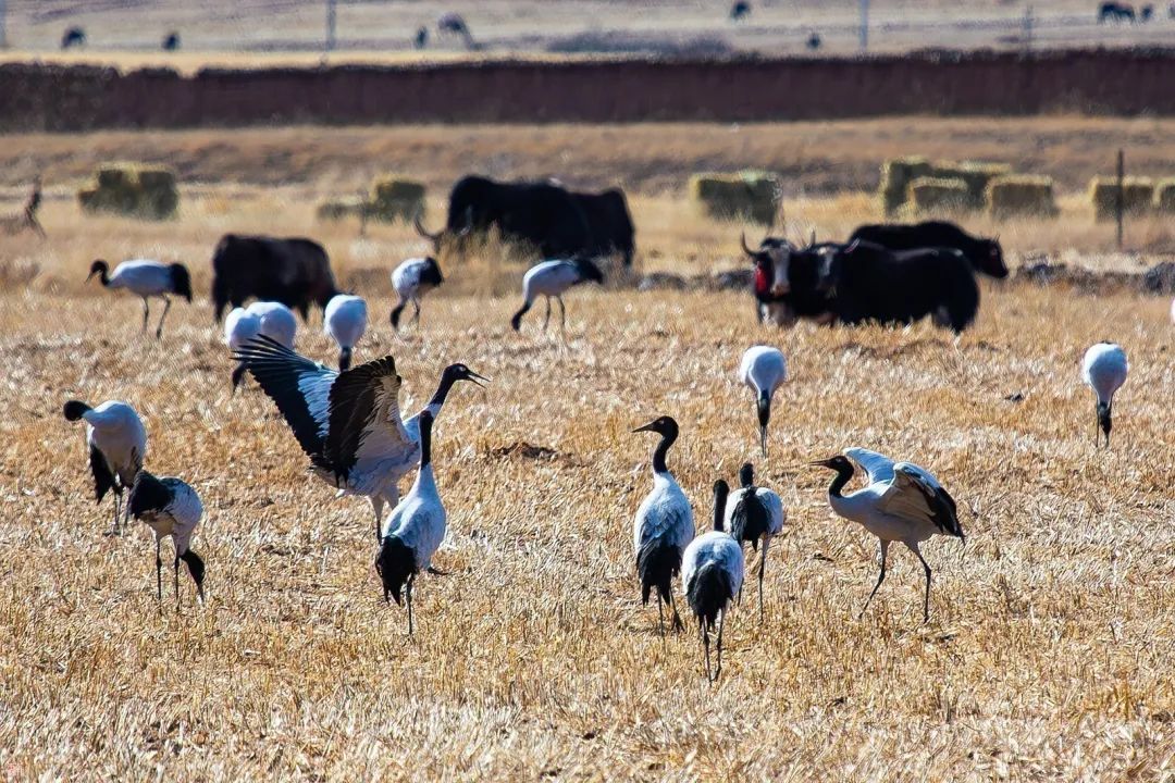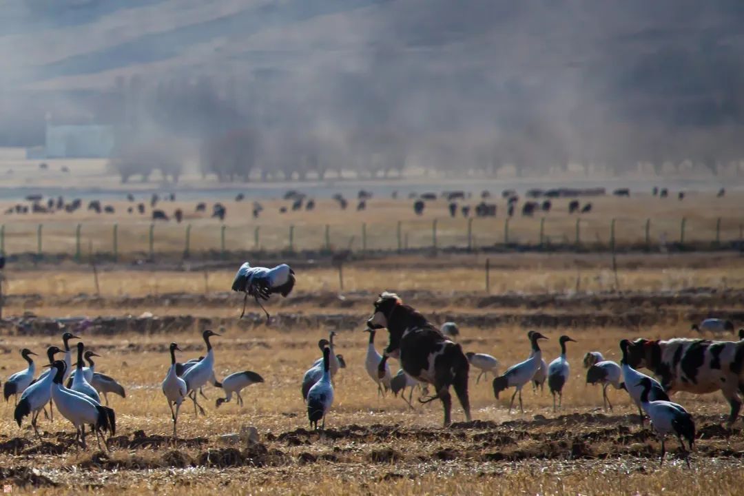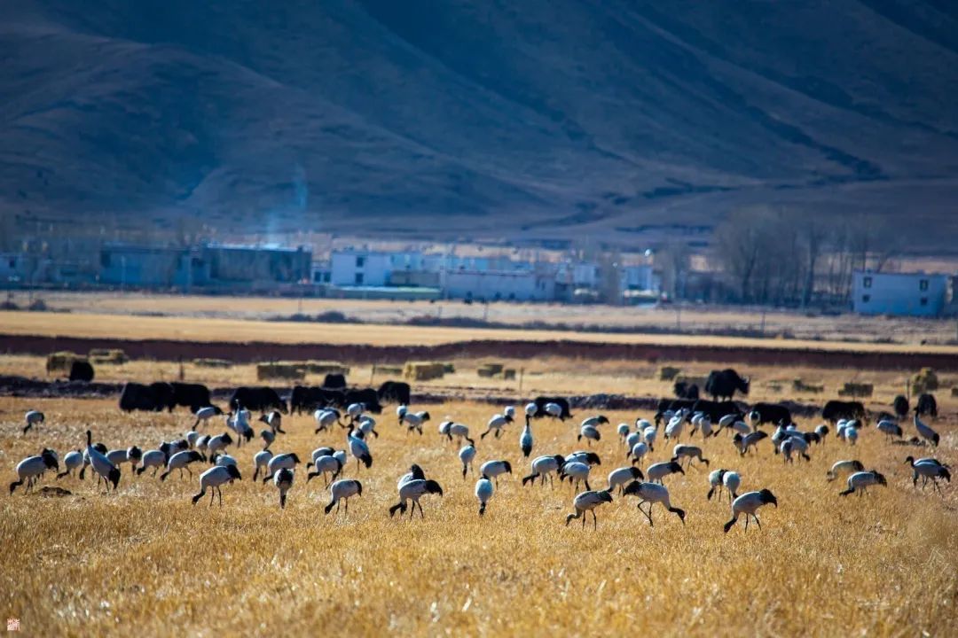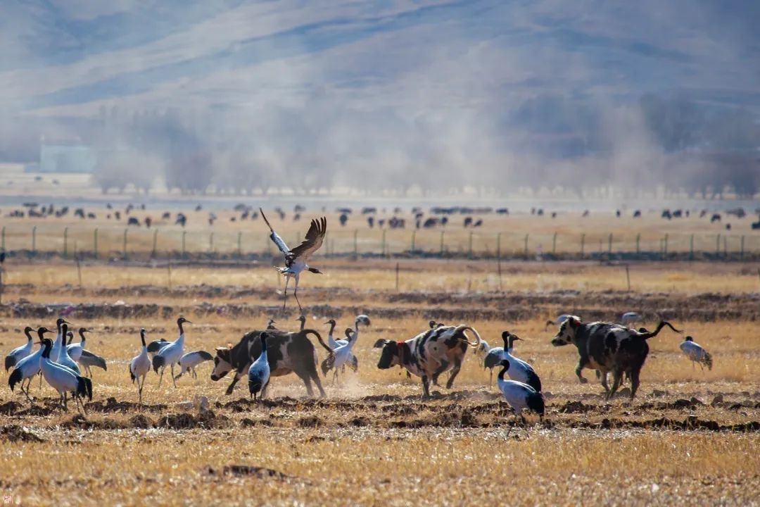 黑颈鹤作为国家一级保护动物,是世界上唯一生存、繁殖在高原的鹤类,素有“高原仙子”、“鸟类大熊猫”、“高原神鸟”的美誉。林周县地处雅江中游河谷黑颈鹤国家级自然保护区,优良的生态环境、适宜的气候,让这里成为黑颈鹤越冬的天选之地。