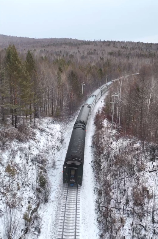 在被誉为中国北极的漠河地区,一列满载旅客的列车行驶在线路上。周健 摄