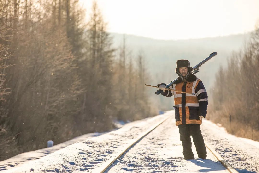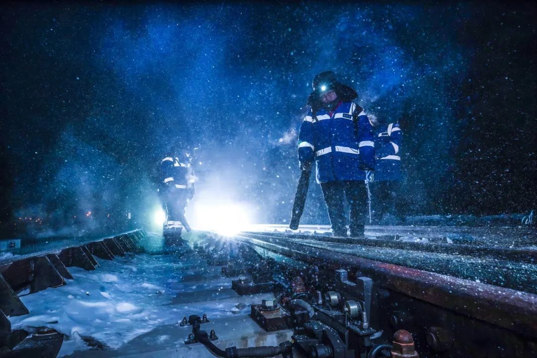 线路工正在给根河地区的铁路线扫雪。芦男 摄