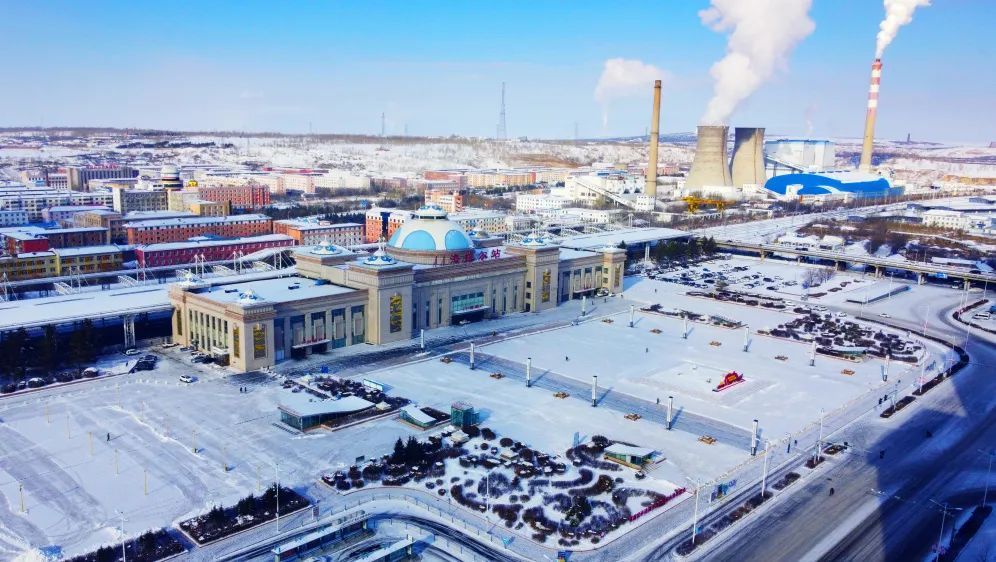 今冬第一场雪后,远看蒙古包造型的海拉尔站犹如一颗闪亮的珍珠。王磊 摄