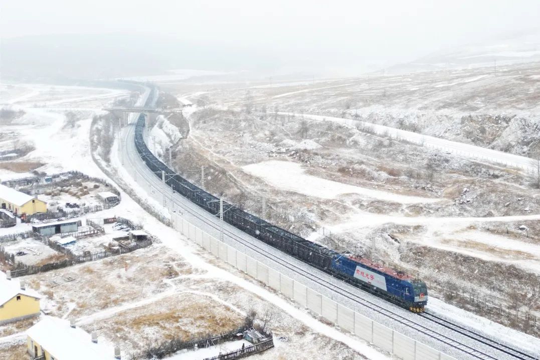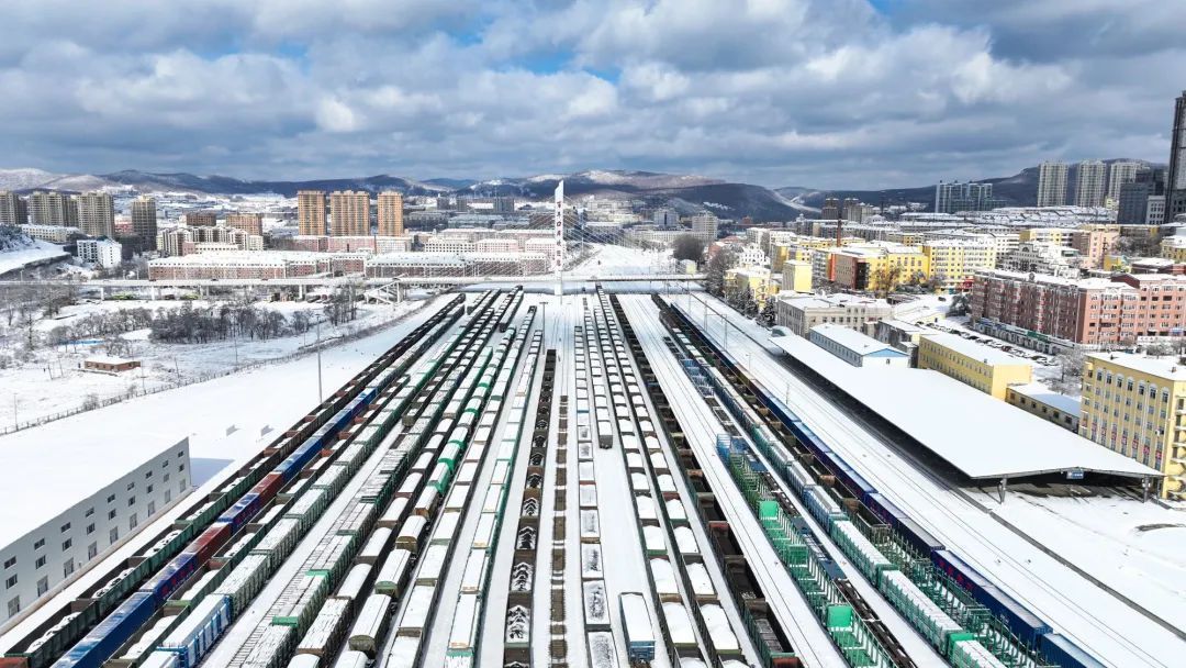 绥芬河站南场迎来首场降雪。曲艺伟 摄