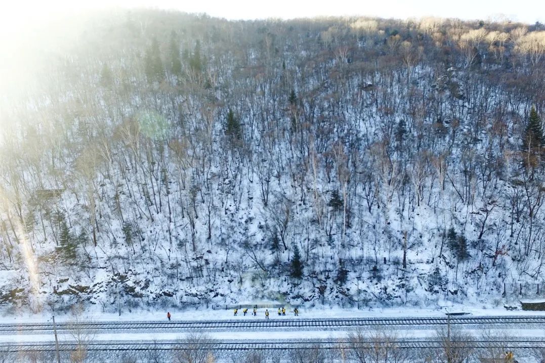小兴安岭脚下,浩良河火车站不远处,铁路工务作业人员正在对线路进行维修保养。李兴海 摄