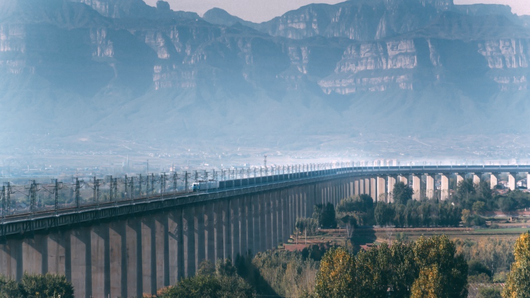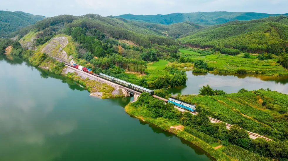 铁路横跨山水之间