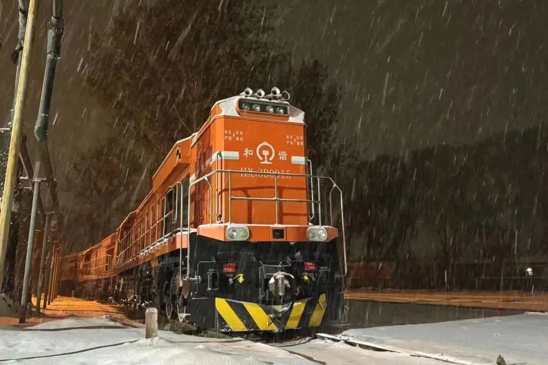 风雪中,HXN3B机车正在进行途调作业。刘树正 摄