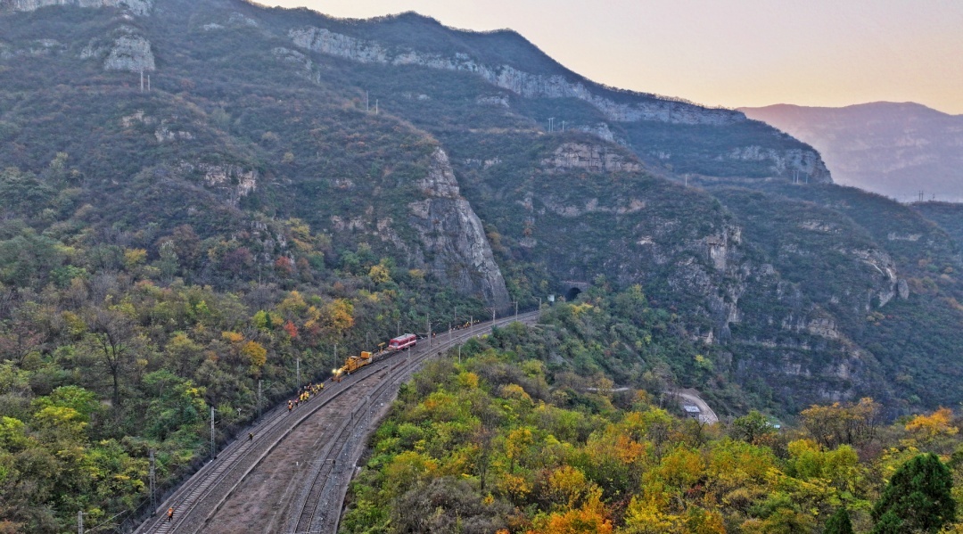 太焦线上,清筛车正在东田良站附近进行施工作业。王玮 摄