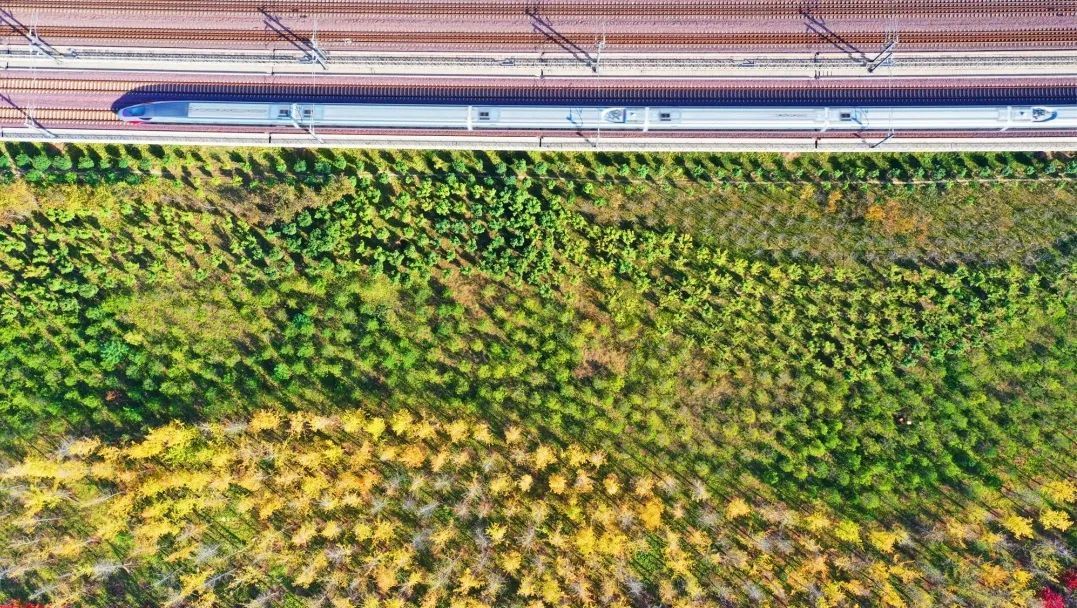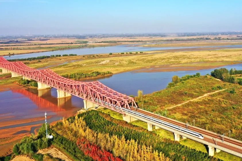 高铁列车驶过郑州黄河湿地保护区。王玮 摄
