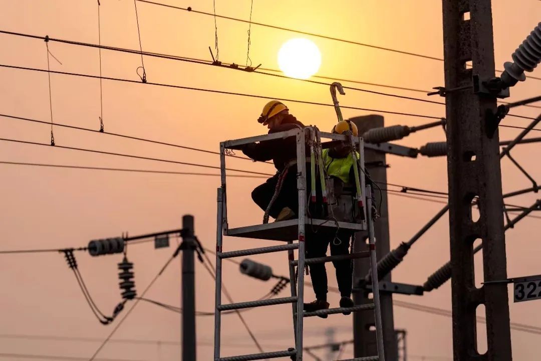 铁路职工正在对襄阳北枢纽场区接触网设备进行全面体检。梁超 摄