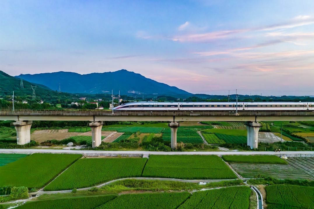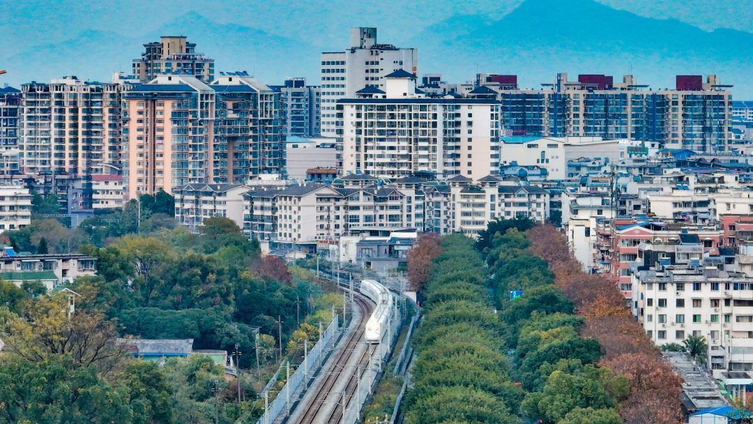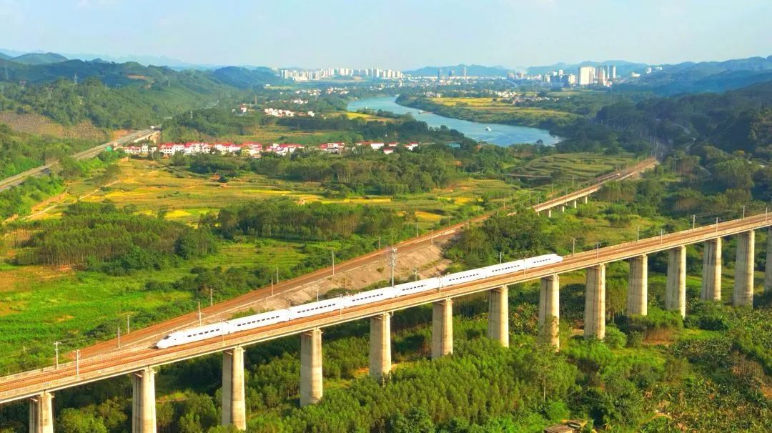 桂林市内,高铁列车正行驶在衡柳线上。蒋松哲 摄
