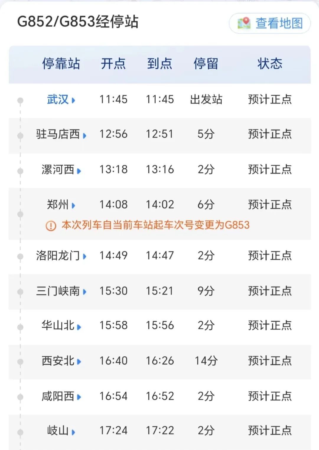 主要经停郑州、西安北